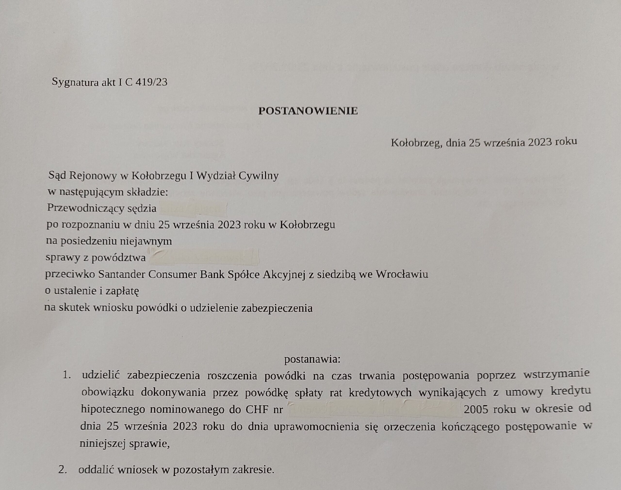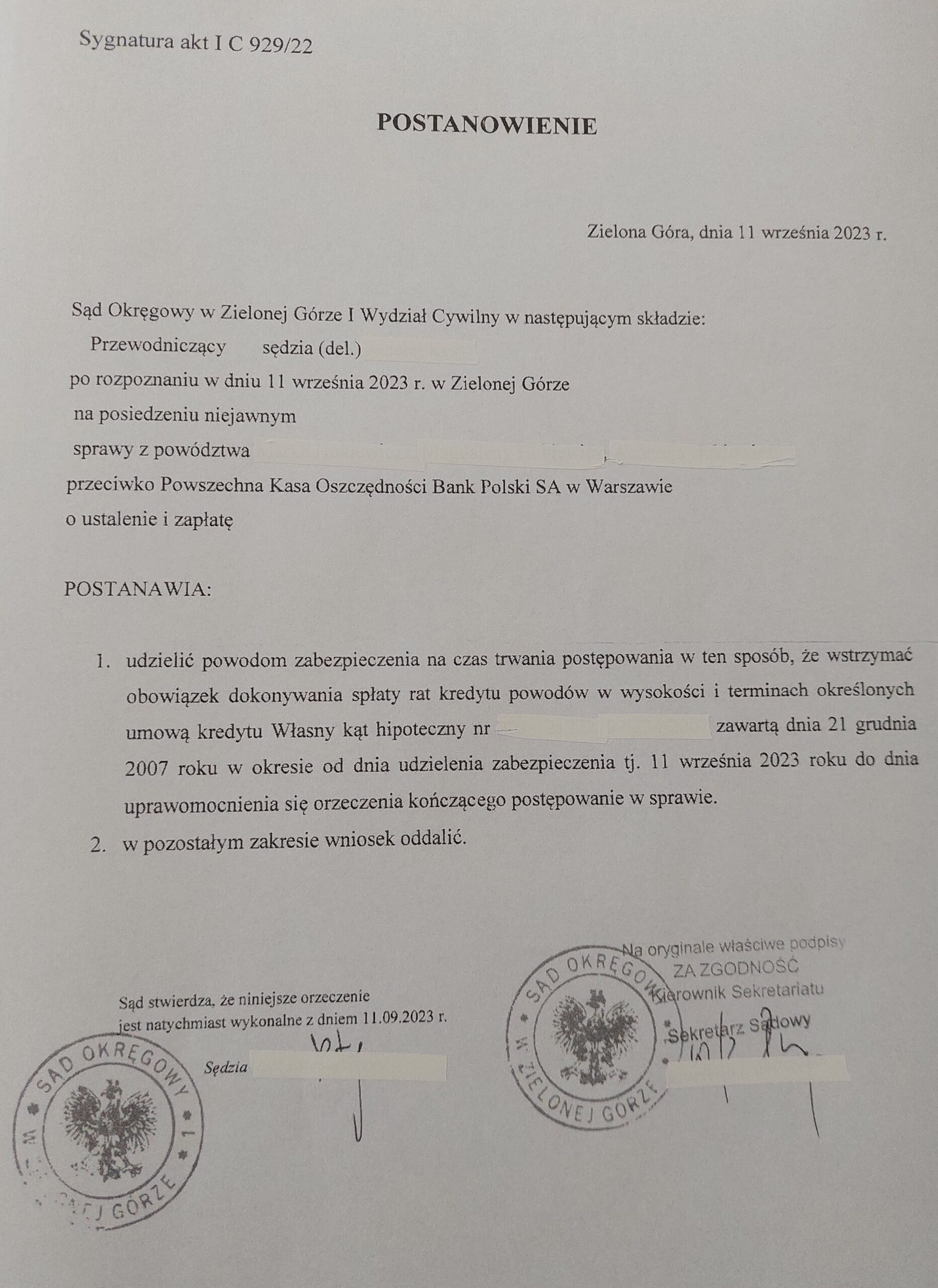 miło nam poinformować o kolejnych zabezpieczeniach, udzielonych kredytobiorcom w sprawach frankowych prowadzonych przez Kancelarię, tym razem przez Sąd Okręgowy w Zielonej Górze oraz Sąd Rejonowy w Kołobrzegu!