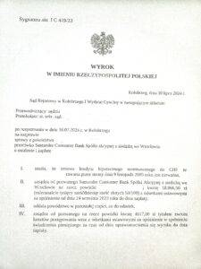 Wyrok z dnia 30 lipca 2024 r. – wygrana z Bankiem Santander Consumer Bank S.A.